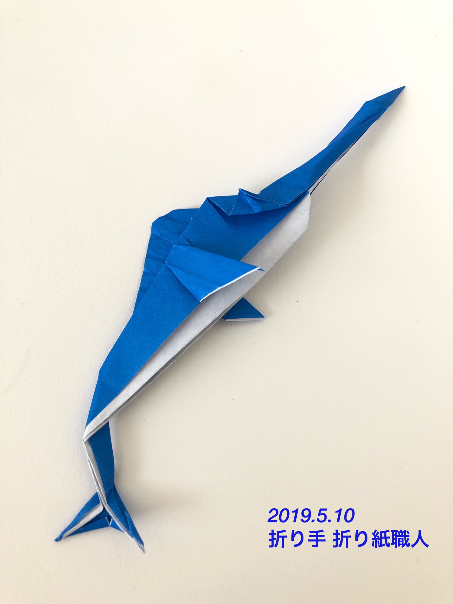 折り紙職人 One Water One World より 剣魚 Swordfish Llhさん 推奨サイズの17 で折りましたが 15でもいけます 15 でも折れるカジキはすごい 意外な方法で突き出た先端の口 ツノ の折り方に驚きました 折り紙作品 Onewateroneworld